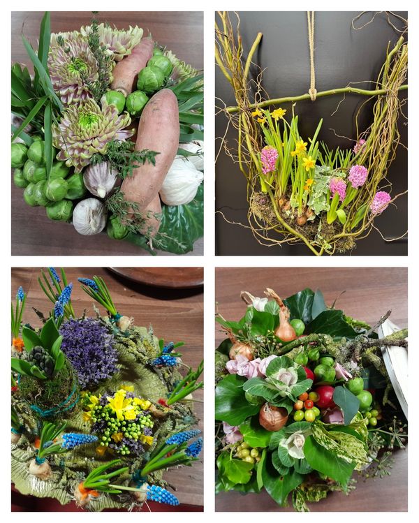Vorig jaar zijn we gestart met de bloemschikcursus onder de enthousiaste leiding van afwisselend Marjan Kamer en Lineke Hummel. In oktober start het nieuwe seizoen, ook weer met Marjan en Lineke als docent. Zij bedenken ieder de eigen opdrachten en zijn daarom heel divers qua onderwerp en uitwerking. Na afloop worden de gemaakte stukken besproken, waardoor er verdieping ontstaat en je soms leert dat het ook anders kan.