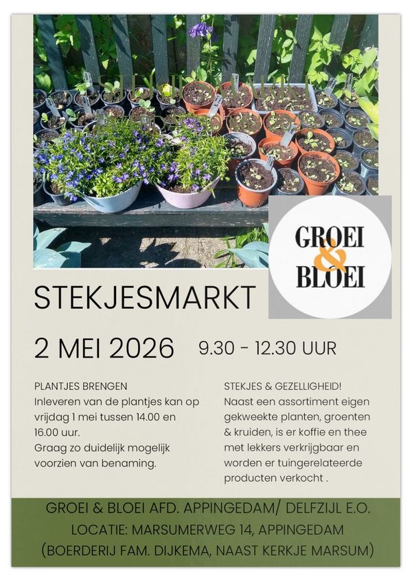STEKJESMARKT ZATERDAG 2 MEI A.S. 9.30-12.30 UUR